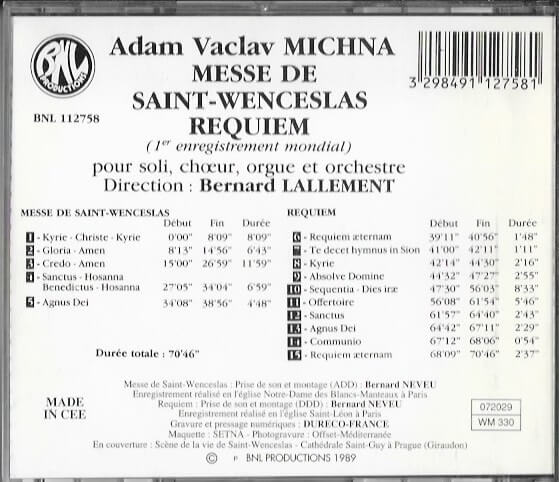 CD Adam Vaclav Michna | Messe de Saint-Wenceslas Requiem aantal