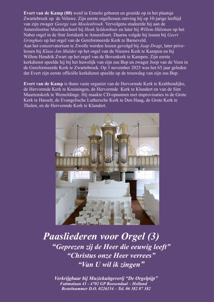 Evert van de Kamp | Deel 65 | Paasliederen voor Orgel (3) | Geprezen zij de Heer, die eeuwig leeft | Christus onze Heer verrees | Van U wil ik zingen